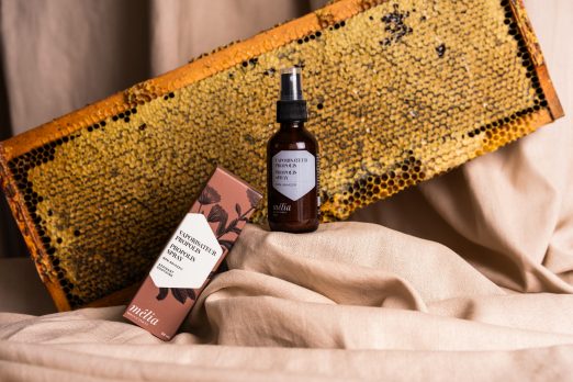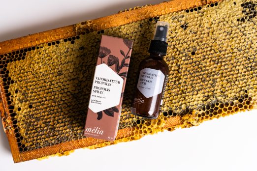 Toutes les créations Mélia sont issues de notre amour pour les abeilles et des récoltes effectuées à même nos 1000 ruches: le miel, un allié de l’épiderme, la cire d’abeille, un protecteur soyeux remarquable et la propolis, un antibiotique naturel aux propriétés antibactériennes et cicatrisantes. La recette est simple par la suite: ajouter des ingrédients botaniques dont l’innocuité et l’efficacité sont bien établies et parfumer uniquement avec des huiles essentielles.