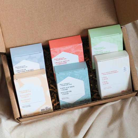 Composées de produits naturels fabriqués ici par nos artisanes, offrez nos jolies boîtes cadeaux porteuses de belles valeurs entrepreneuriales.